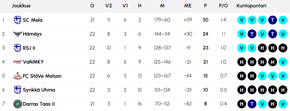 Sarjataulukko 2025-2026 VI-divisioona, ES lohko D